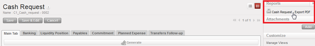 The Full report PDF report (PDF) PDF output showing all entries in a register, including breakdown of invoice lines for imported invoices and analytical allocation. This report provides full detail to cross reference paper receipts and invoices. The full report in PDF format can be considered an accounting or financial document because it has validation fields. Additional note: It includes also record of deleted entries and all manual journal entries on corresponding liquidity journal..