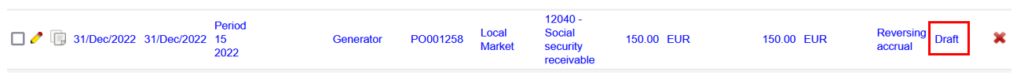 Entries will be booked in period 16 and will be visible in the G/L journals but no analytical entries will be created (no impact on the budget)