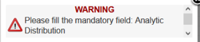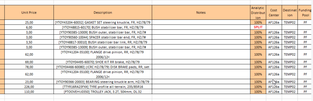 Analytic distribution: we have the % 100%. If the % is not 100% it means that the line was split son we will have the word EMPTY and the last 3 columns will remain empty.