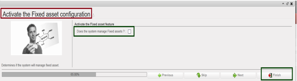 Note that the company configuration of each instance must be done before launching the yearly closure. For more details, see Chapter 2 – Configurations and IT User manual guideline.