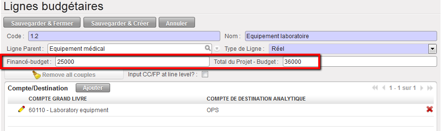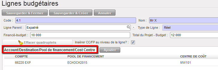 - Réservé + Projet total, centres de coûts et durées de financement différents