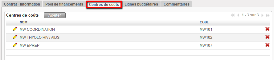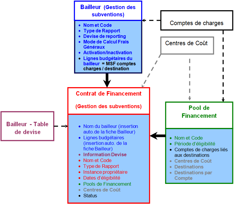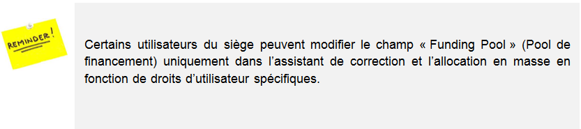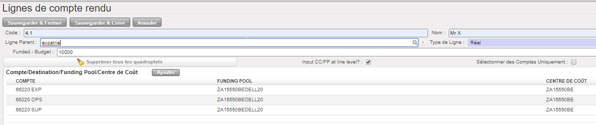 Pour produire tous les rapports pertinents destinés à tous les bailleurs, l’utilisateur doit créer trois FP pour imputer les dépenses :