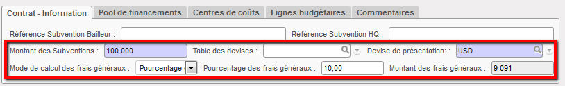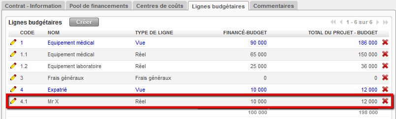 - Projet total, mêmes centres de coûts et durées de financement