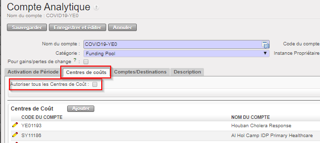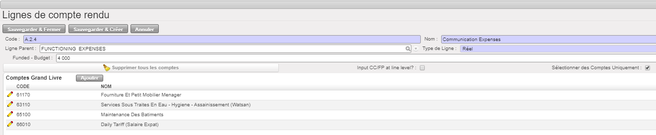 - Ces comptes devront d’abord être activés dans le plan comptable au siège