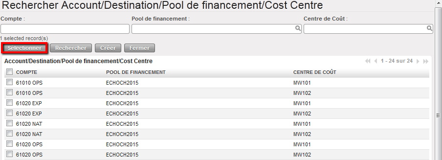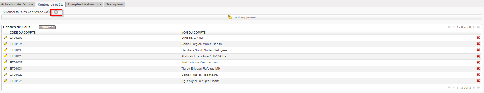 | 2. Configurations Finance | 21.0 | LUFI-20401 Destinations | 16.Jun.2021 | Déactivation et activation des combinaison Cost center / Destination. |