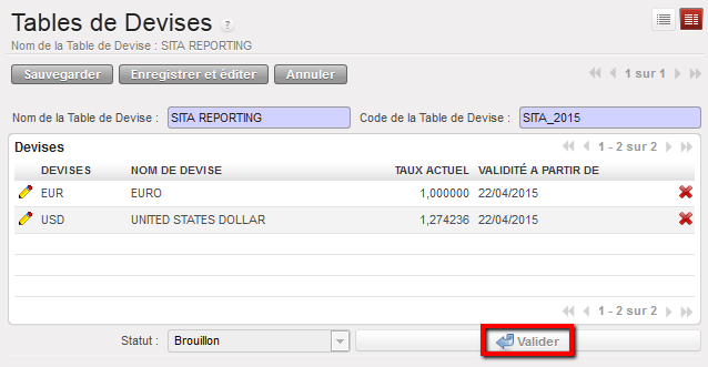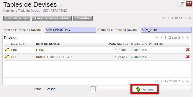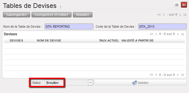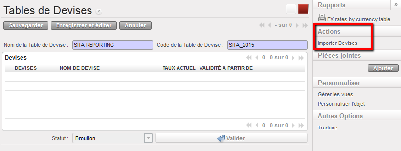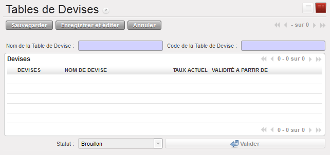 - Sélectionnez une table de devise