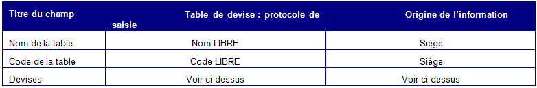Sélection d’une table de devise (Currency table)