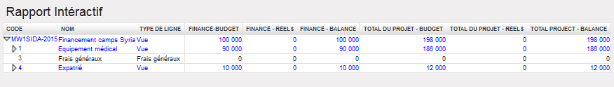 Pour produire des rapports destinés au bailleur A, l’utilisateur doit tenir compte de toutes les dépenses incluses dans les FP suivants (converties dans la devise du bailleur et conformément au format du rapport/aux lignes de financement communiqué par celui-ci) :