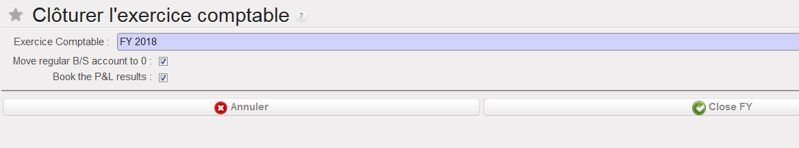 Trois fonctions dont deux facultatives sont disponibles quand le bouton “Clôturer l’exercice comptable est activé: