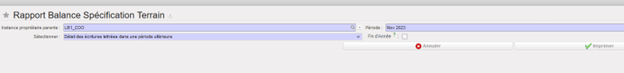 | 5. Outils et recherche | 37.0 | LUFI-50105 Sélecteur Balance Générale (GL) LUFI-50105 Sélecteur analytique LUFI-50107 Rapport des Journaux aggrégés | 07.06.2025 | Nous avons rajouté dans tous les rapports la possibilité de mettre 365 digits dans le champs de la séquence comptable |