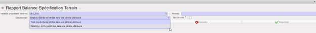 - “Sélectionner” avec 2 options soit “Total des écritures réconciliées dans la période ultérieure” soit “Détails des écritures réconciliées dans la période ultérieure”.