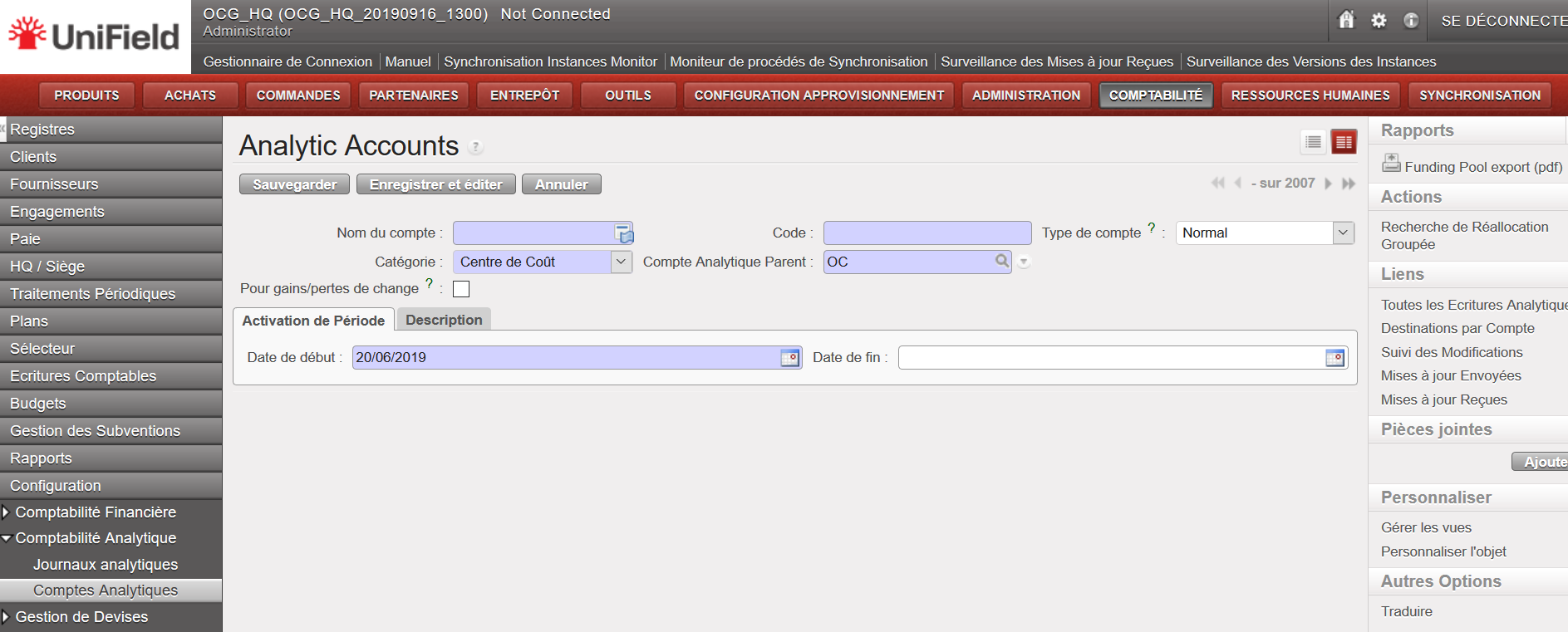 – Les écritures comptables et les lignes d’écritures analytiques serons exécutées au siège que s’ils correspondent aux nouvelles dates fixées au siège.