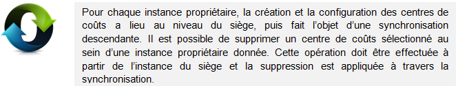 Le Siège doit associer des centres de coûts spécifiques à l’instance propriétaire.
