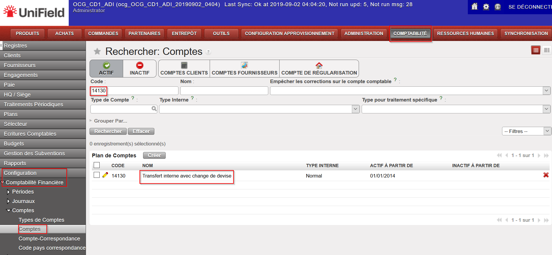 2. Sélectionnez le compte que vous voulez, dans notre exemple, nous choisirons (Transfert interne avec change de devise – 14130).