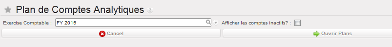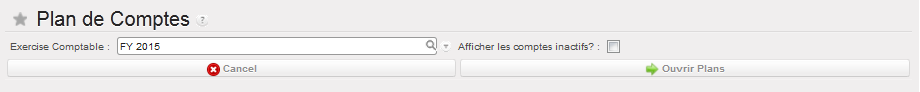 Sélectionnez un exercice comptable et choisissez ou non d’afficher les comptes inactifs. Cliquez ensuite sur {Ouvrir les plans comptables}.