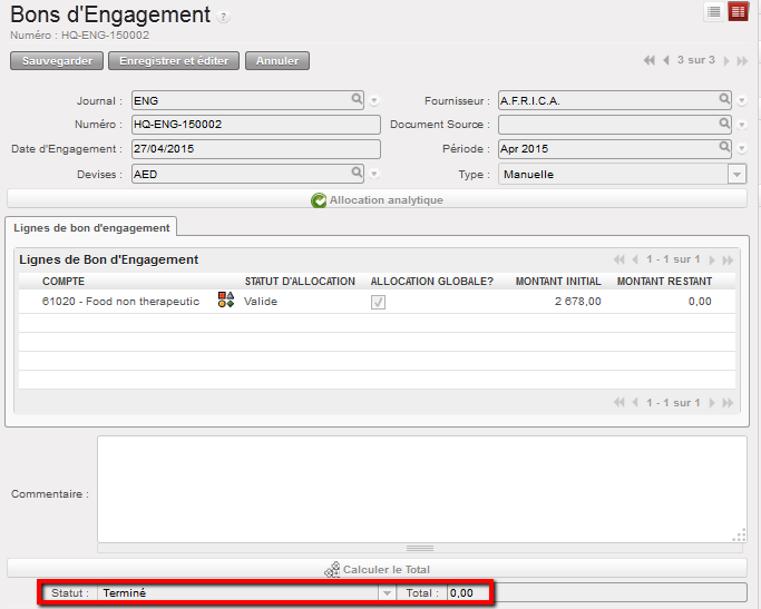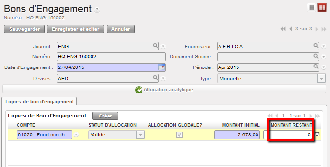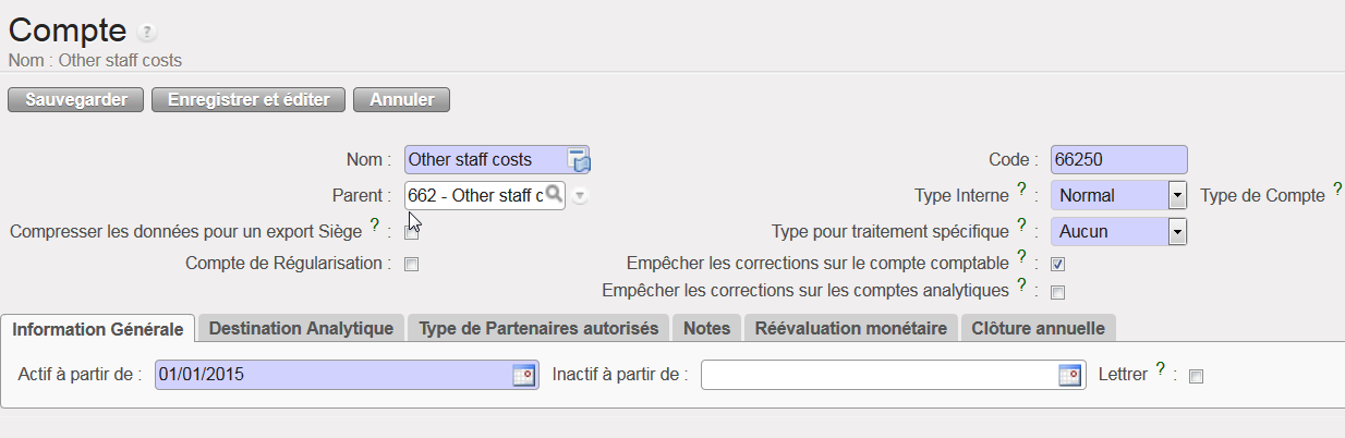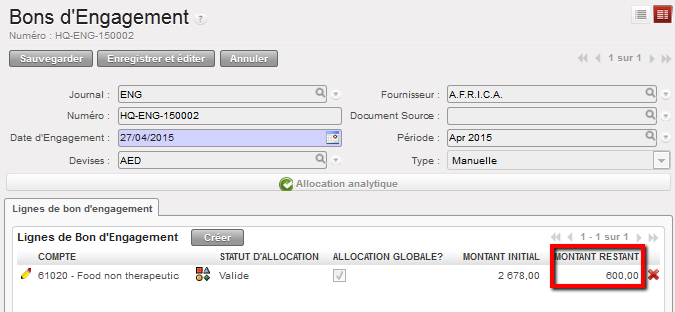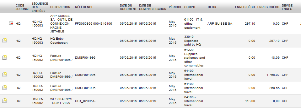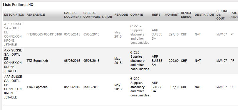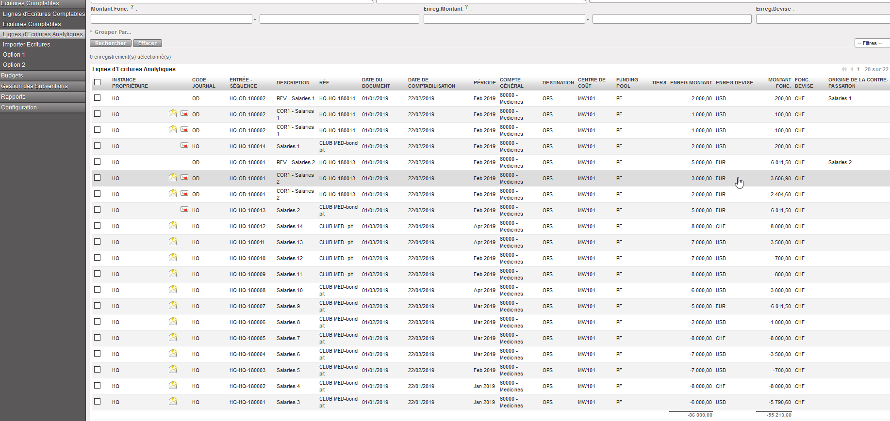 - Une ventilation du coût total pour MSF par salarié, à enregistrer dans un compte de charge ordinaire pour le personnel national {66001 ; 66002}. Le nom du salarié s’affiche dans le champ {Tiers} et sa fonction dans le champ {Référence}.