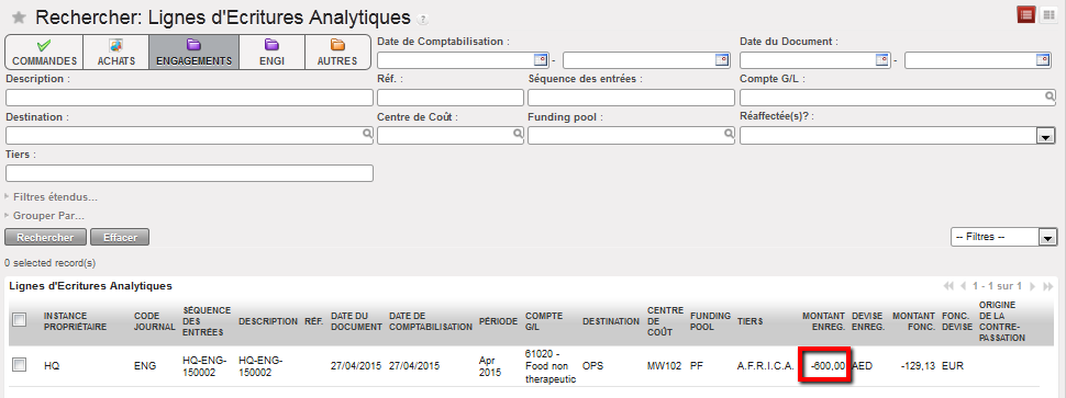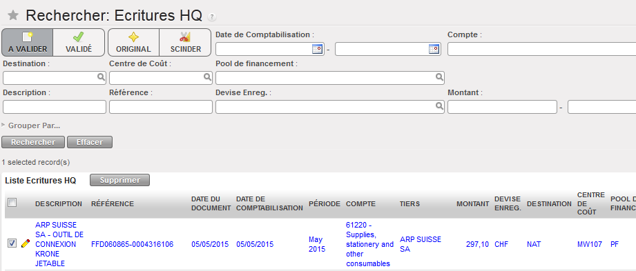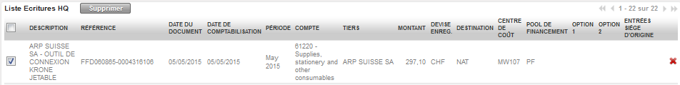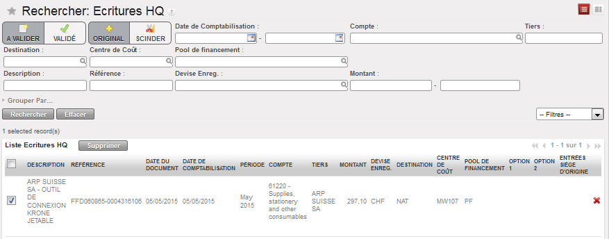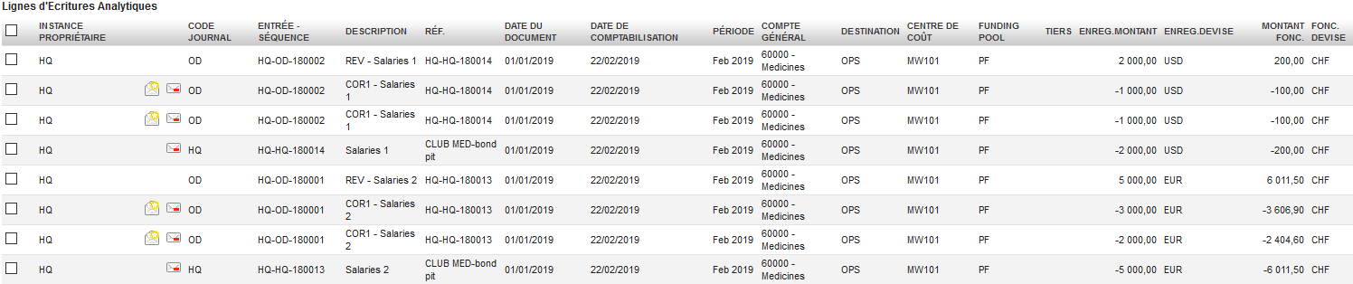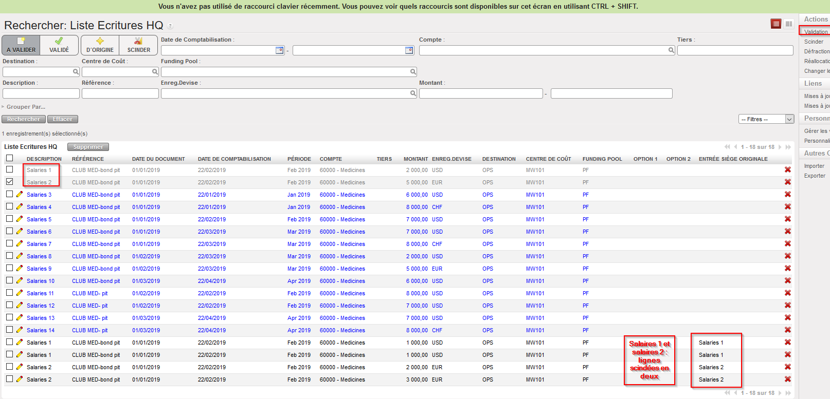 - Modifiez la destination, le centre de coûts et/ou le pool de financement pour rendre l’entrée valable.