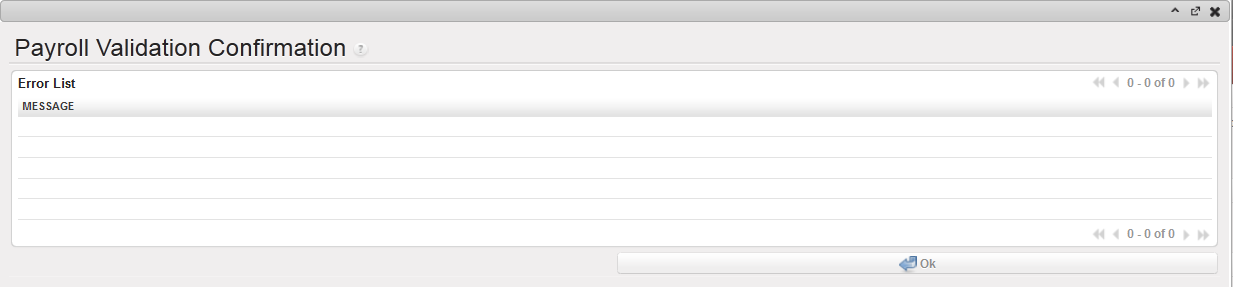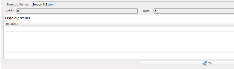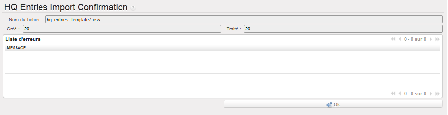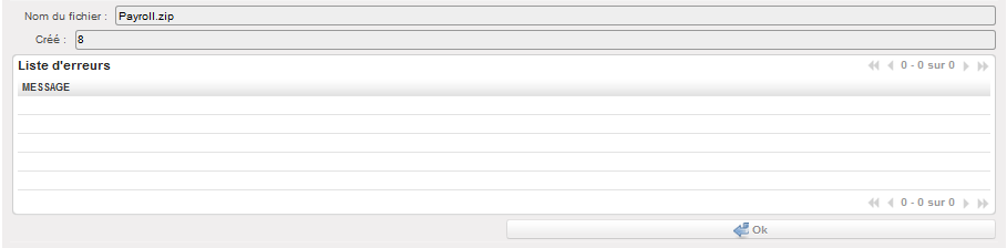 Fenêtre {Confirmation d’importation Paie} avec liste d’erreurs vide