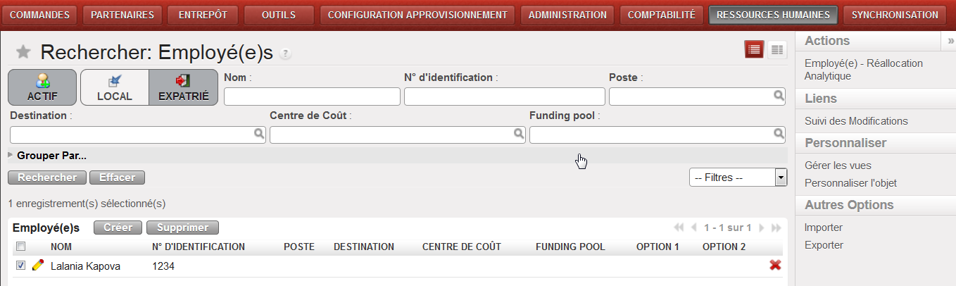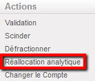 - Allez dans le menu Actions et sélectionnez {Paie – Réallocation analytique}.