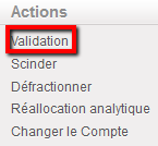 3. Sélectionner le bouton {Valider les écritures sous statut brouillon} dans le menu « Actions »