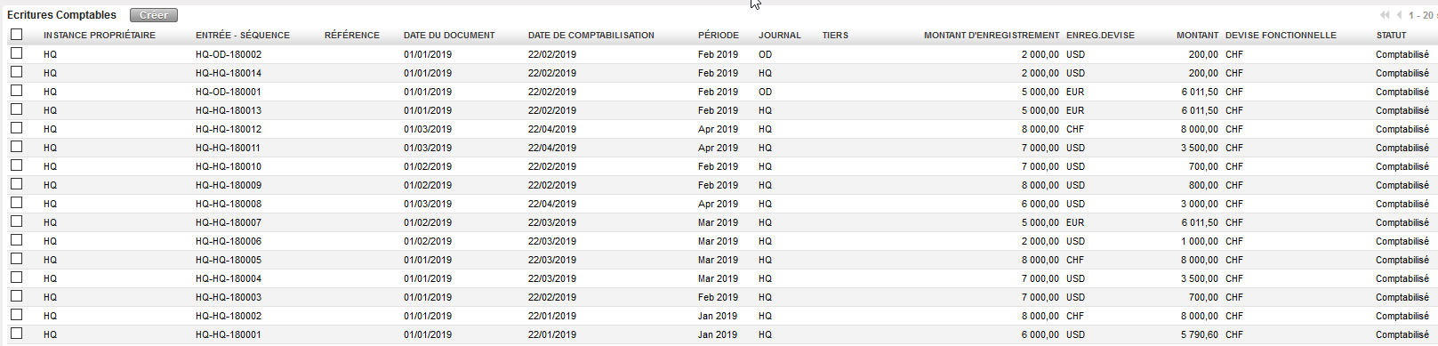 Sélectionnez Comptabilité/Écritures comptables/Lignes d’écritures comptables.