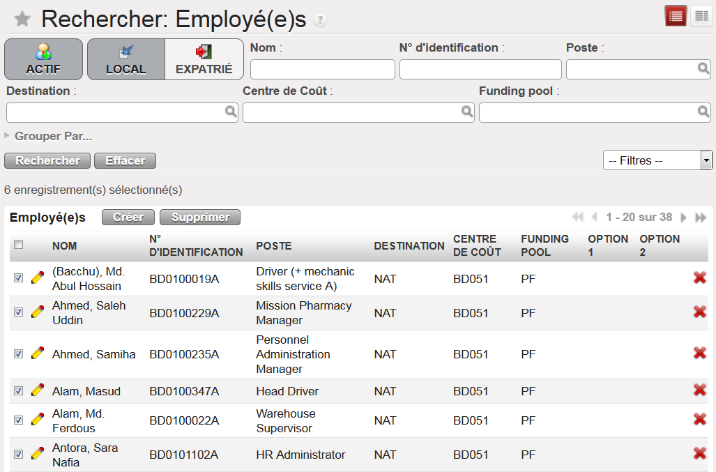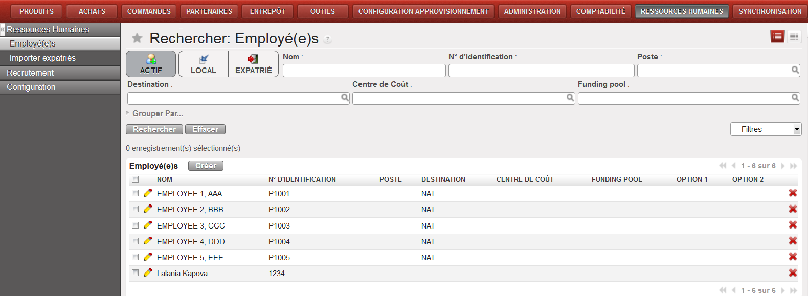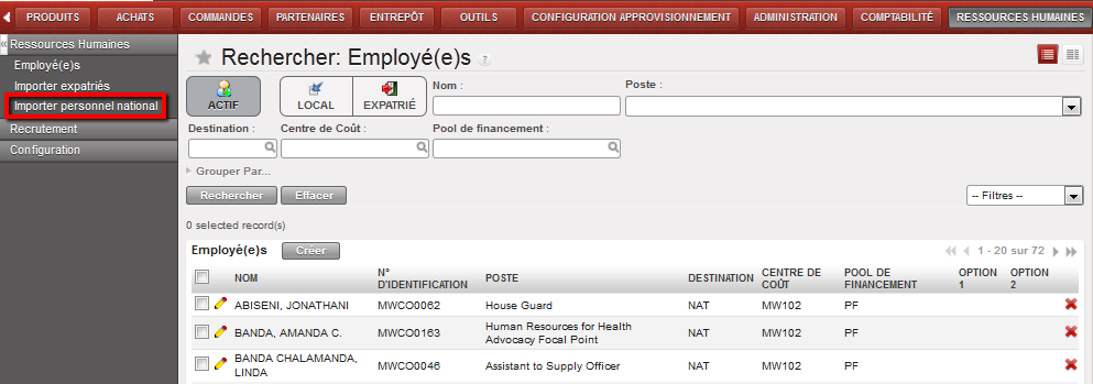 Manuel de l’Utilisateur Finance -> 4. Imports – Gestion des Ressources Humaines, Dépenses Siège et Budgets -> 4.1 Gestion des Ressources Humaines -> LUFI-40105 Gestion de la paie du personnel national