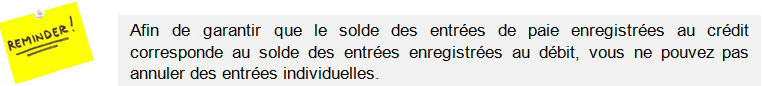 Vous pouvez valider les entrées de paie une seule fois, toutes les lignes étant enregistrées sur une entrée comptable unique qui doit être balancée au crédit et au débit.