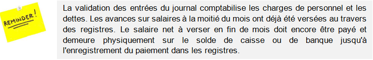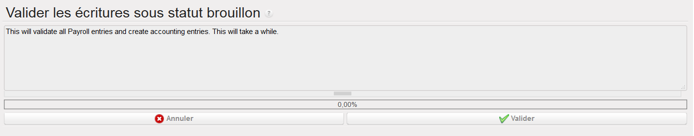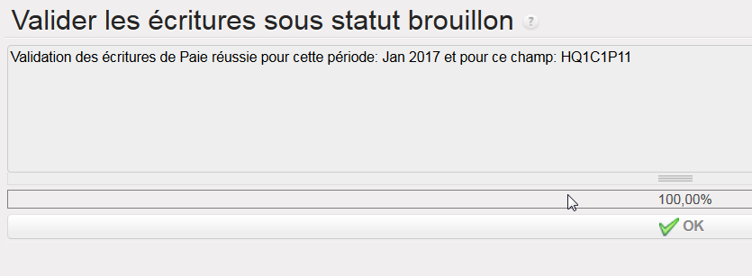 4. Sélectionner {Valider} et attendez l’enregistrement définitif des entrées paie dans les journaux.