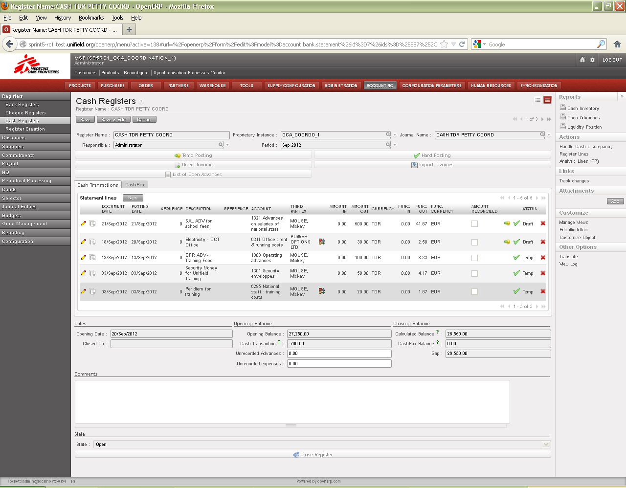 Only Coordination can correct and validate the HQ entries, any correction done at HQ entries will be booked in the HQ DO journal (ODHQ).