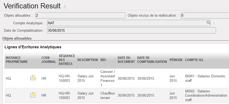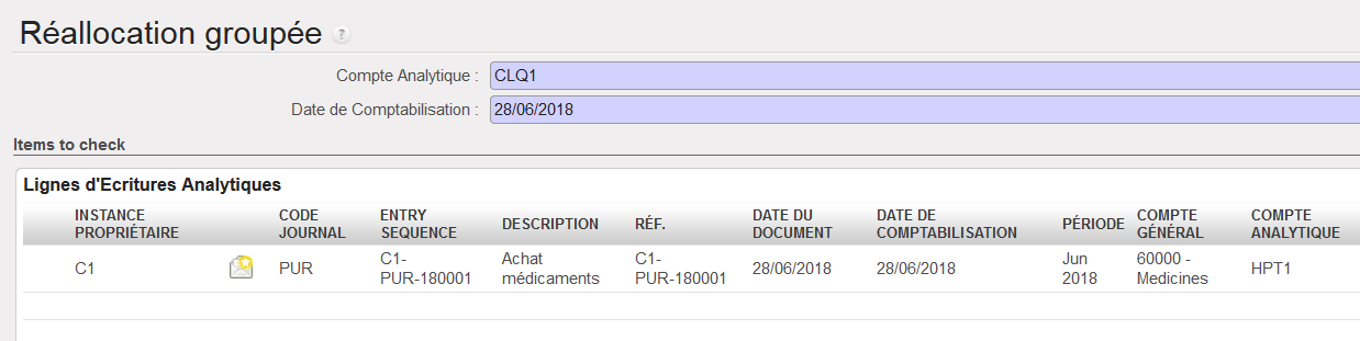 Le système recherche toutes les entrées qui peuvent être réallouées à ce compte analytique.