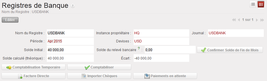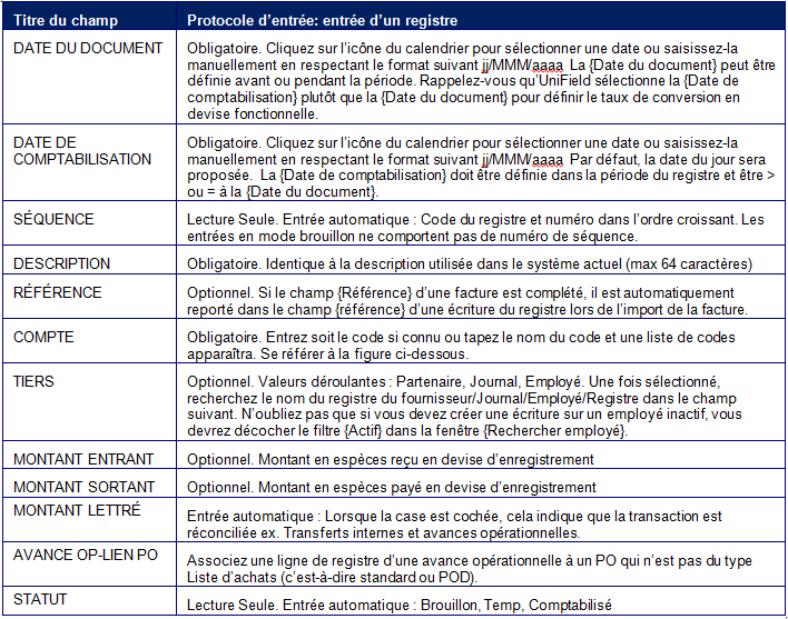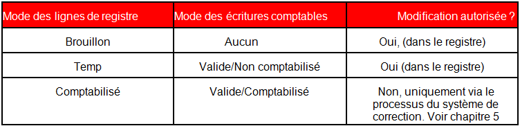 (La procédure est identique pour enregistrer des écritures dans les registres de caisse ou de banque, vous devrez en revanche saisir en plus un numéro de chèques pour une entrée enregistrée dans un registre de chèques)