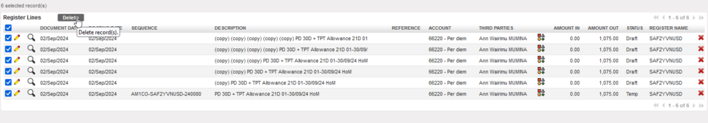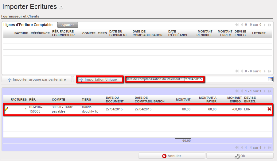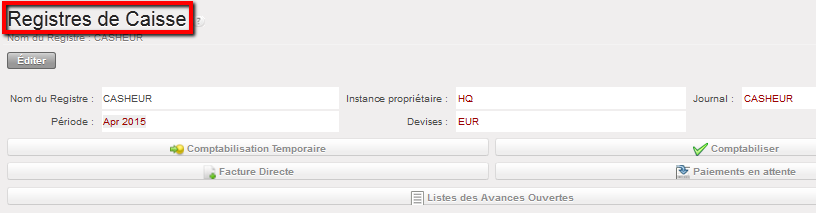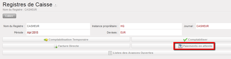 Manuel de l’Utilisateur Finance -> 3. Paiements -> 3.3 Paiements et Registres -> LUFI-30205 Enregistrement des entrées directes