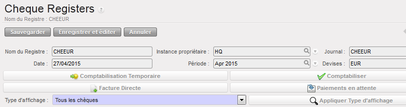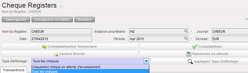 Si vous effectuez un paiement au travers du registre de chèques, vous devrez indiquer le numéro du chèque. Ce champ est obligatoire.