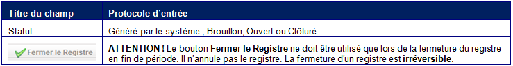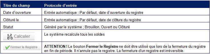 ne doit être utilisé que lors de la fermeture du registre en fin de période. Il n’annule pas le registre. La fermeture d’un registre est irréversible.