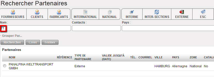 Entrée de valeurs pour rechercher le nom d’un partenaire dans le champ {TIERS}