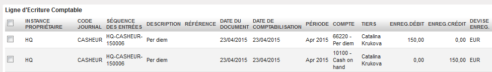 Allons plus loin : la comptabilisation temporaire d’une entrée directe entraînerait la création des entrées suivantes dans le journal des liquidités :