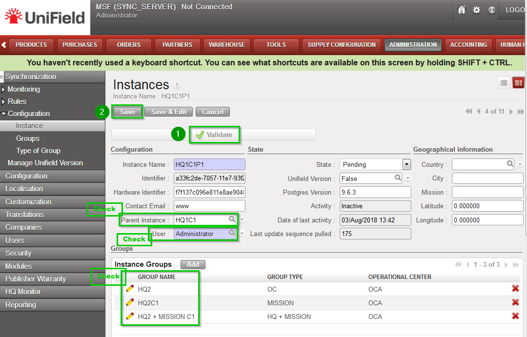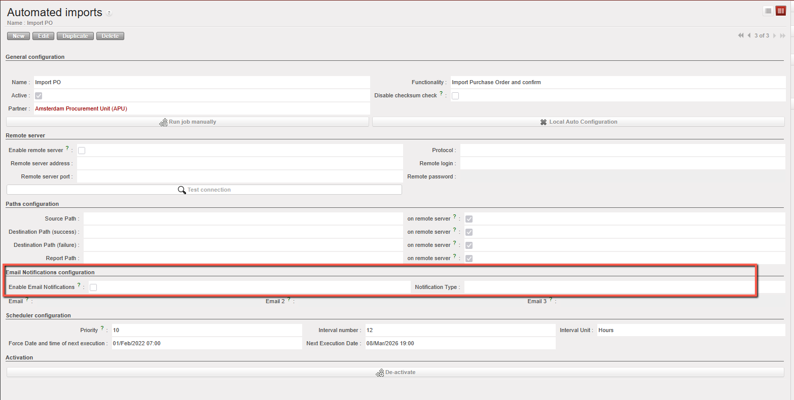 The system is able to automatically import supply data from predefined locations, and update the corresponding records in UniField. This was designed to automate the data transfer between the ESC and UniField: existing Purchase Orders (state: Validated) and Incoming Shipments will be updated if data is valid.