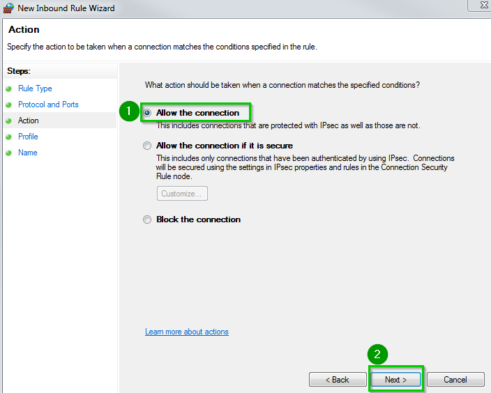 Select Allow the connection 1 Click Next 2