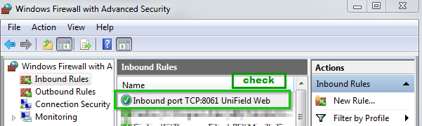 1.6 Allow the UniField web port on Windows 7 Pro Firewall