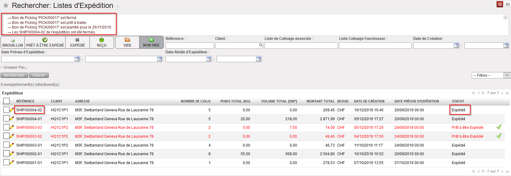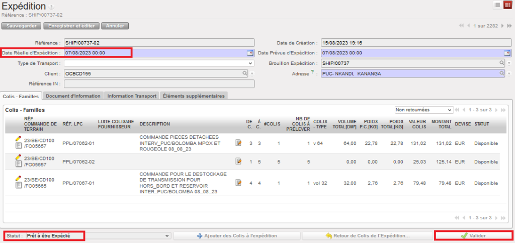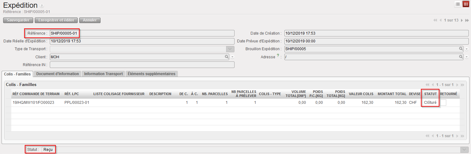 Si le OUT est entièrement traité, il passe simplement au statut “Expédié”.