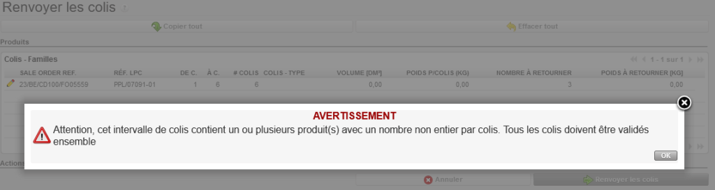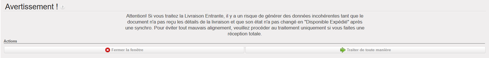 Notez que tous les produits/quantités disponibles sur l’écran “Bons de Livraison” sont transférés vers l’écran “Produits à Traiter“. C’est la signification du message jaune de l’écran précédent.