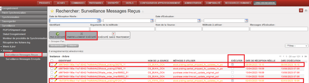 D’autres situations sont également possibles impliquant un sourcing mixte (requête sourcée en partie du stock et en partie sur commande) et des disponibilités différentes (certaines lignes du OUT au statut “Disponible” et certaines au statut “pas Disponible”), la confirmation partielle de POs, la réception partielle de POs, etc…