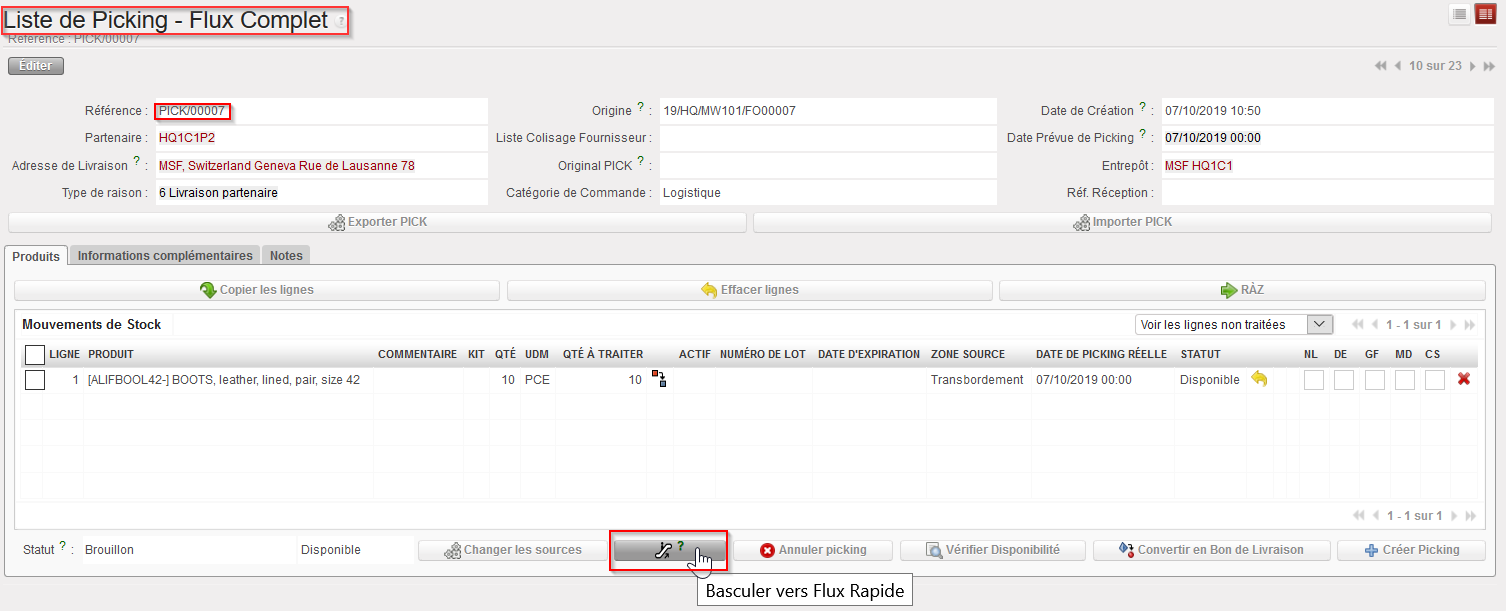 Néanmoins, il est possible de changer cela à tout moment. Les Bons de Livraison peuvent être convertis en Bons de Picking et les Bons de Picking peuvent être convertis en Bons de Livraison.