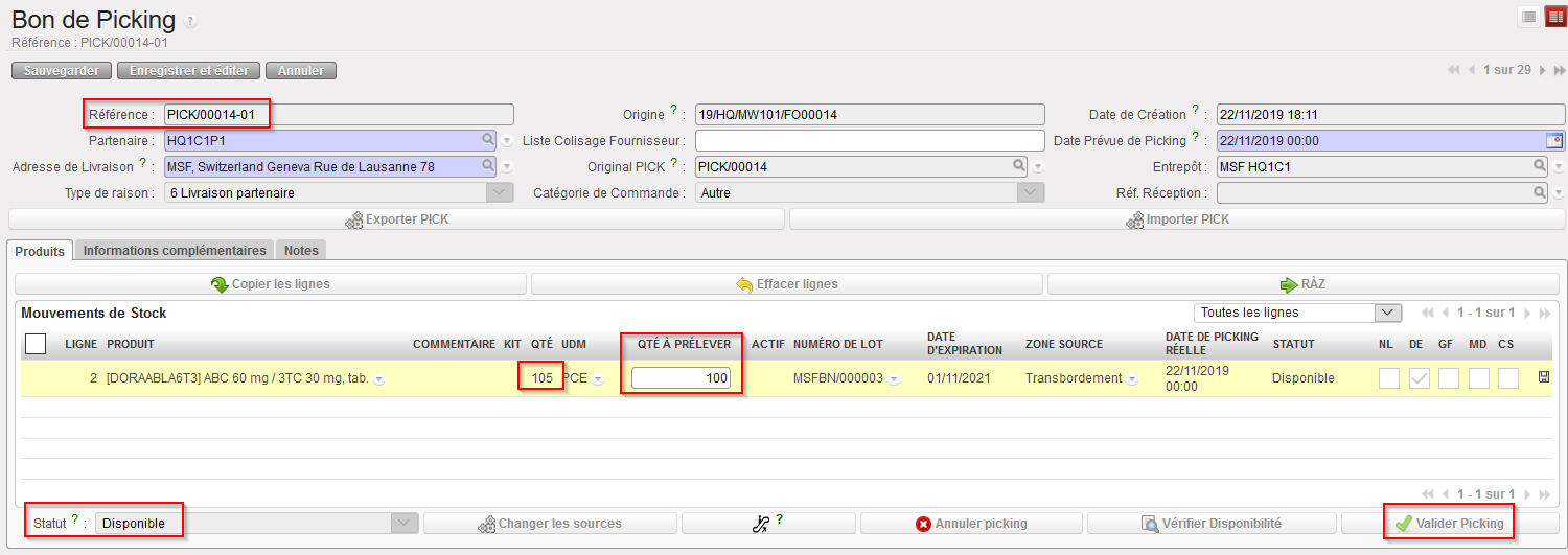 Cela signifie que vous avez la possibilité de transférer vers un sous-PICK les quantités qui ne sont pas disponibles si vous forcer la disponibilité sur le main PICK. Cette opération doit être effectuée avec prudence.