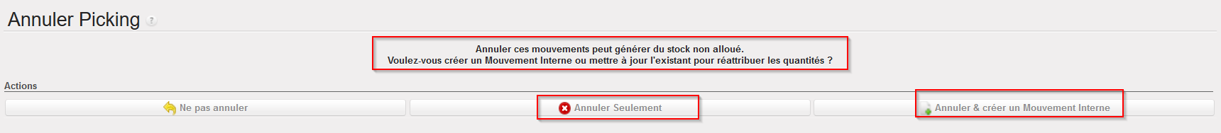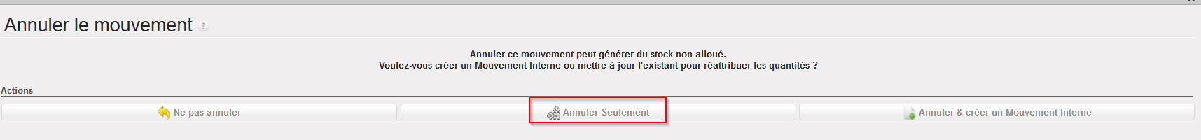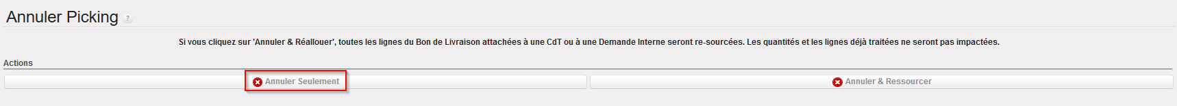 3. Dans la fenêtre “Annuler Picking”, confirmez l’annulation en cliquant sur le bouton “Annuler Seulement”.