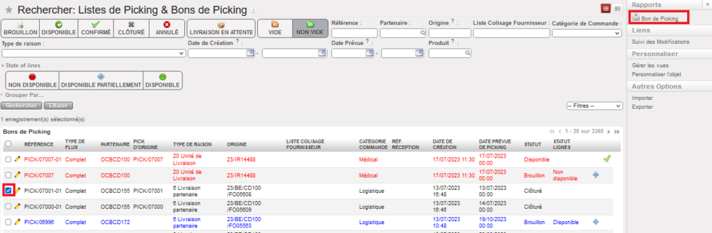 Cliquez sur la ligne correspondant à ce Bon de Picking.
