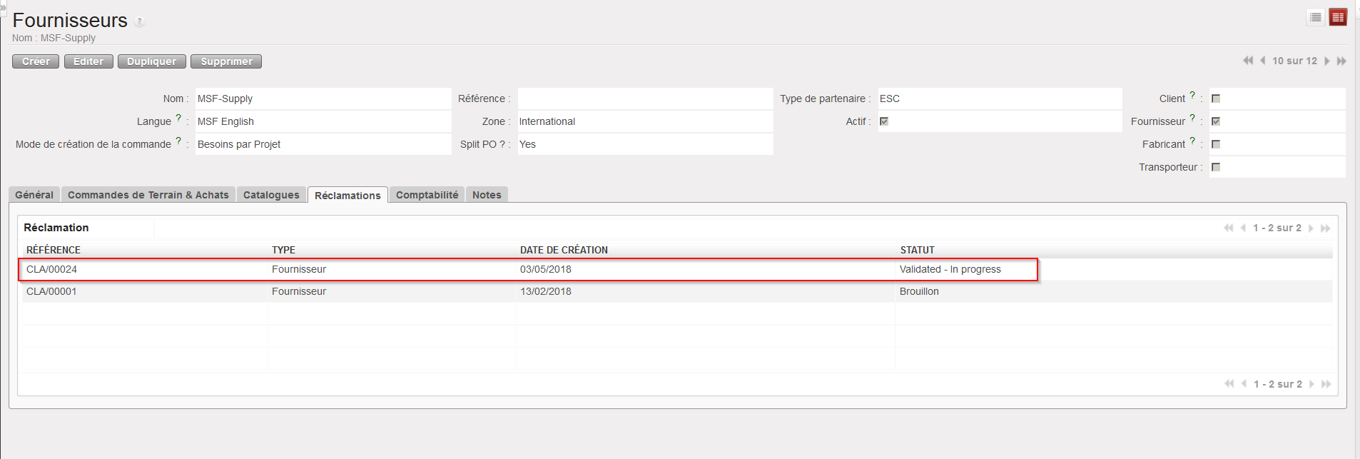 - Pour le cas d’une Commande de Terrain (FO) qui a un client Partenaire Externe, si cette FO est sourcée vers un fournisseur externe sur DPO, il n’y aura pas de IN à réceptionner dans le flux. Dans ce cas, le bouton “Valider la Réception” sur le PO (DPO) en statut Confirmé sera disponible pour faire cette action et clôturer le flux supply.