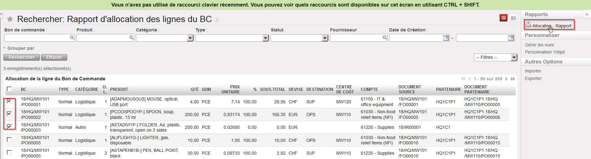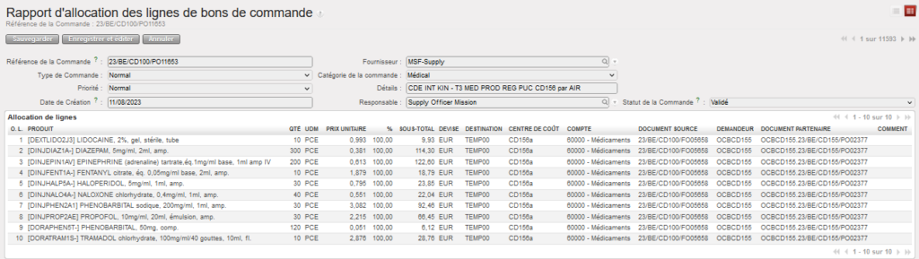 Les étapes suivantes montrent comment annuler & re-sourcer une ligne d’un PO dont le statut est “Brouillon” et qui a été généré par l’OSC suite au sourcing d’une FO sur commande.