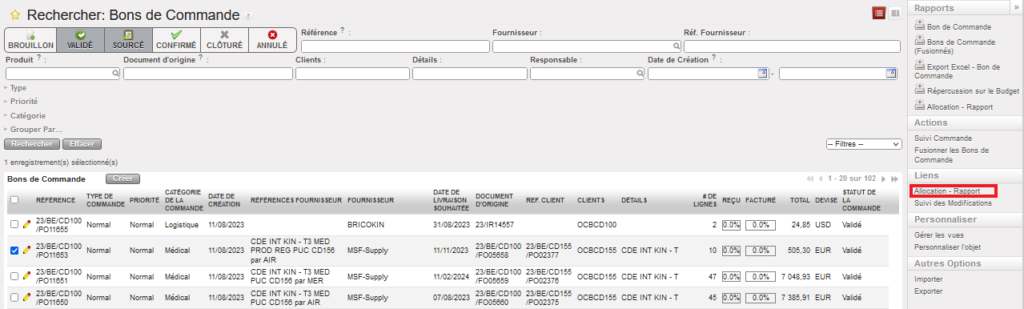 Les étapes suivantes montrent comment annuler & re-sourcer un PO dont le statut est “Validé” et qui a été généré par l’OSC suite au sourcing d’une FO sur commande.