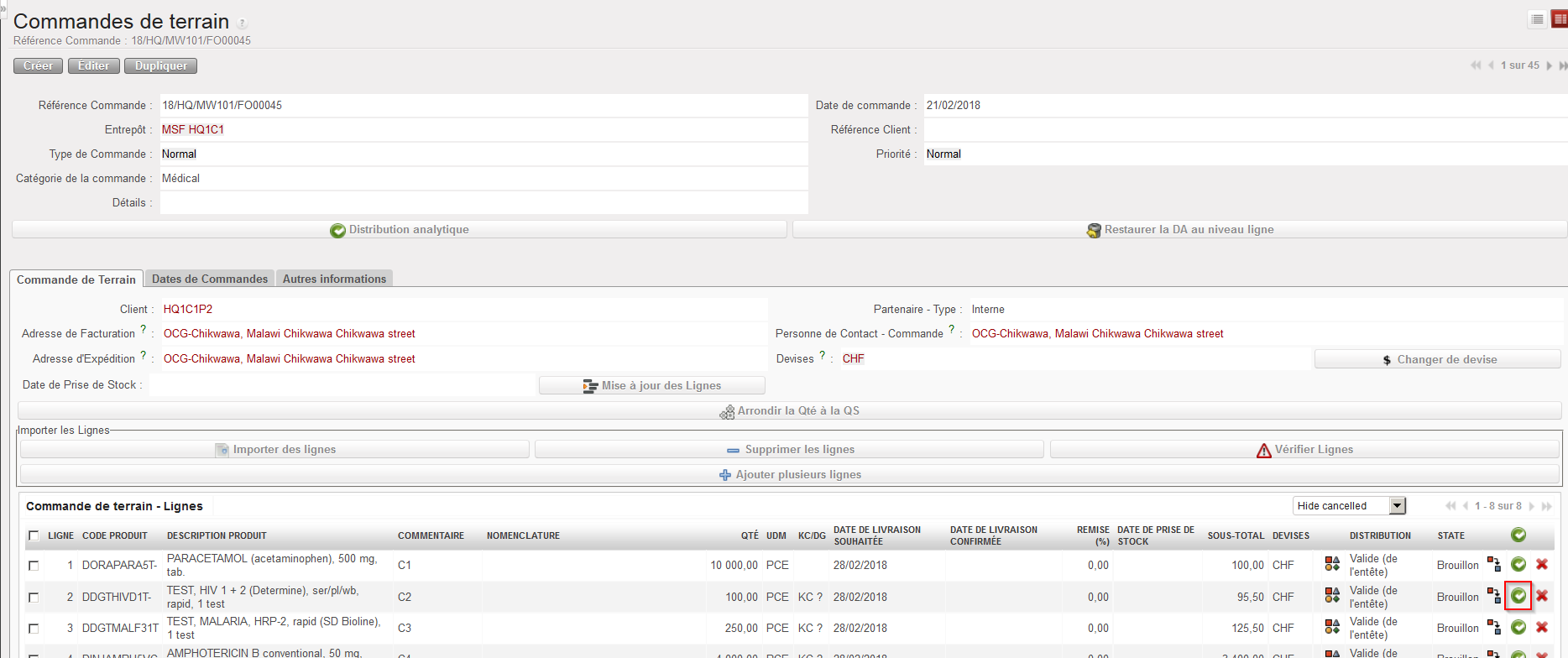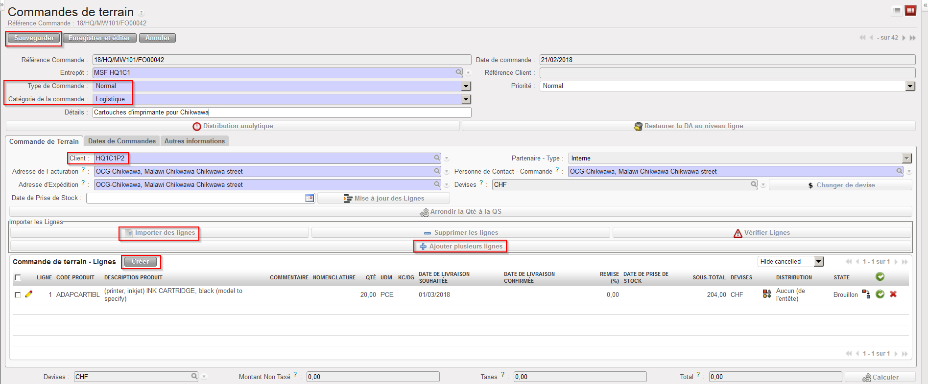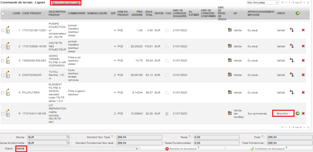 NB: Nous verrons plus tard qu’il est également possible d’importer des lignes de commande depuis un fichier Excel (via le bouton “Importer des lignes”).